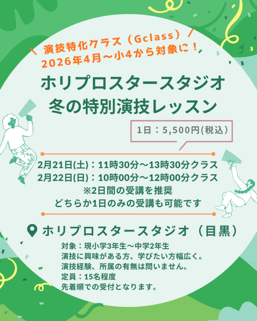 参加者募集中!冬の特別演技レッスン・2月21日(土)、22日(日)